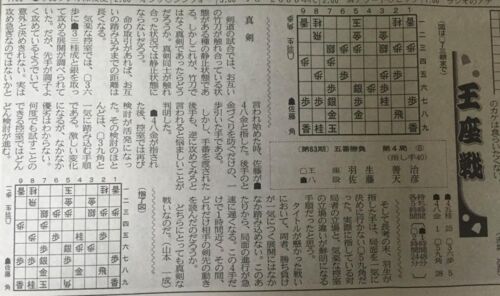 本文に書いてあるとおり、△59角の場面では△39角▲38飛△37歩成(▲同金は△57角成がある)▲39飛△48と と一気に進む順ばかり控え室で研究しており、婉曲的な△59角が指された時、今まで研究が無駄になるので、ちょっぴり残念に思っていていました。